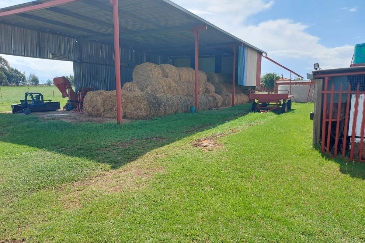 VAT NOT INCLUDED, SELLER REGISTERED FOR VAT, NO ESTATE DUTY PAYABLE ONLY LAWYERS REGISTRATION FEE PAYABLE LIVESTOCK, IMPLEMENTS & BUTCHERY EQUIPMENT CAN BE BOUGHT SEPARATELY FOR R770 000 Well managed 56-hectare farm for sale close to Pretoria with easy access to the N4 highway. This property offers a face brick house with 3 bedrooms and 2,5 bathrooms, living areas, kitchen with separate laundry and pantry. There is a large carport for 4 cars. Industrial butchery without equipment and 12 sqm cold-room. Outside offices with their own bathroom. Other outbuildings consist of a big workshop (248 sqm) and storage room (270 sqm). One block of Luzern under irrigation has been planted (4.5 ha) and 38 hectares can be used for cattle, sheep ect grazing. Full cattle and sheep handling facilities and kraals and the farm is divided into 7 camps all with water points. There are two boreholes and a gravel dam and waterfowl pond which provides ample water.