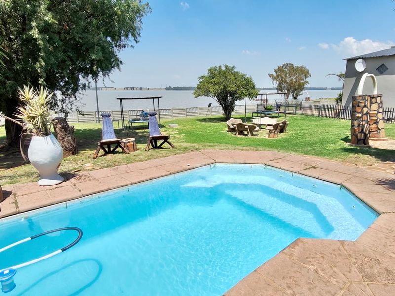 Waterfront Vaal Dam retreat ideal for events, weddings and corporate getaways, with 140m private dam frontage and jetty, 14 equipped chalets, pools and games room.