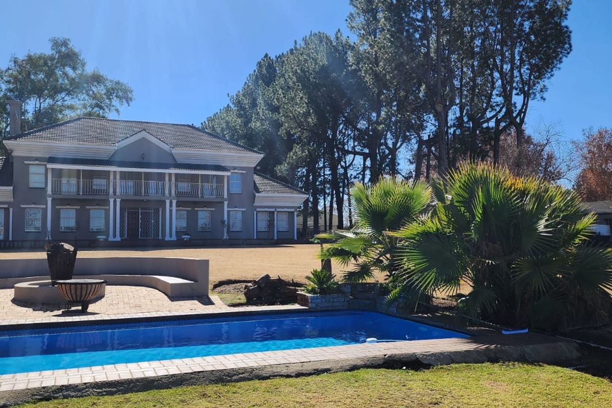 Pine-lined estate with private river access, jetty and boat launch, sparkling pool and expansive entertainment area with bar and covered braai, gourmet granite kitchen, nine bedrooms and six bathrooms.