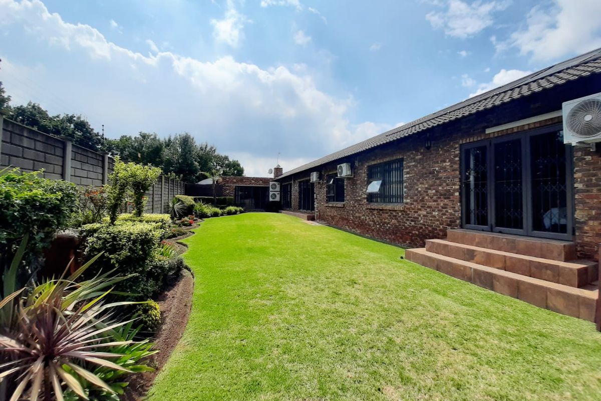 Entertainer's haven with open-plan living flowing to a built-in braai, jacuzzi and fireplace; huge granite island kitchen, heated private pool, two double garages and gym room.Resort-style home featuring an indoor braai and bar, pool with Jacuzzi, sleek granite kitchen with gas stove, four bedrooms and carports for six vehicles.Secure, self-sufficient home with backup generator, solar-powered boreholes, CCTV and alarm; entertainment wing with guest bedroom plus kitchen, master with dressing room and en-suite.