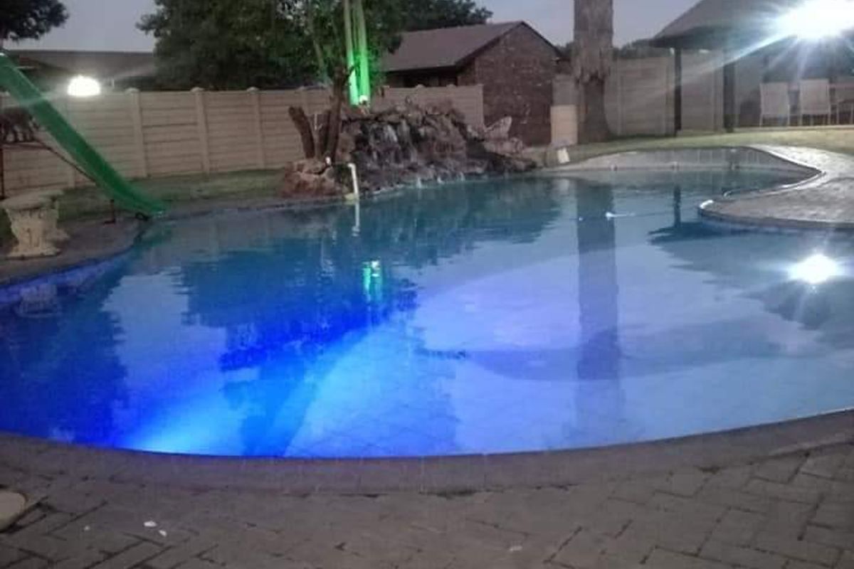 Versatile income-generating property with pool and built-in bar, six outside rental rooms, two flats and land for expansion; main bedroom upstairs with aircon and jacuzzi. Three beds, two baths.