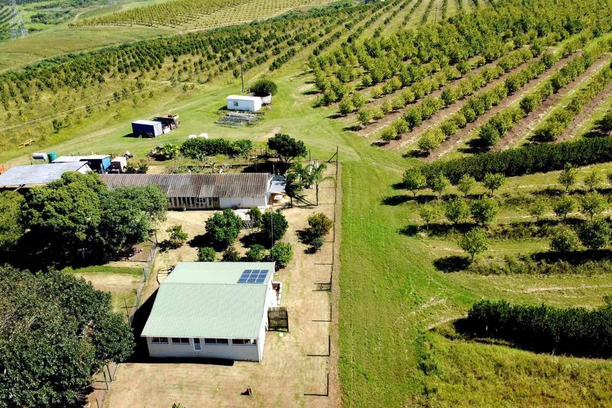 Valley farming lifestyle with Umzali River frontage and sweeping rural views, established macadamia orchards and irrigation infrastructure — four-bedroom farmhouse, two-bedroom cottage and large workshop.
