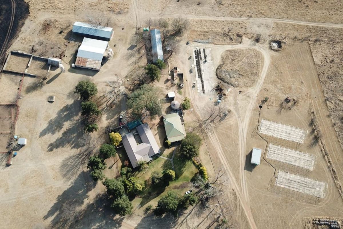Commercial farming lifestyle near Dundee (20km toward Ladysmith) on 1,149ha thornveld with river, 18 camps and a fully automated poultry complex (9000 hens); two houses (8 beds, 3 baths).