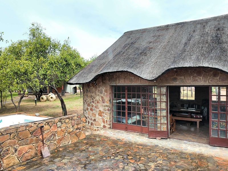 Escape town bustle for peaceful Waterberg living on a 12.8-hectare farm, 4 km from Modimolle, with a mature wild-fig garden, boma braai and three bedrooms.