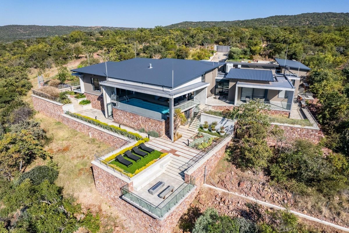 Embrace safari living in the Waterberg foothills near Bela‑Bela on a private 536.6‑ha game reserve with lodge, infinity pool and a 100‑metre underground shooting range.