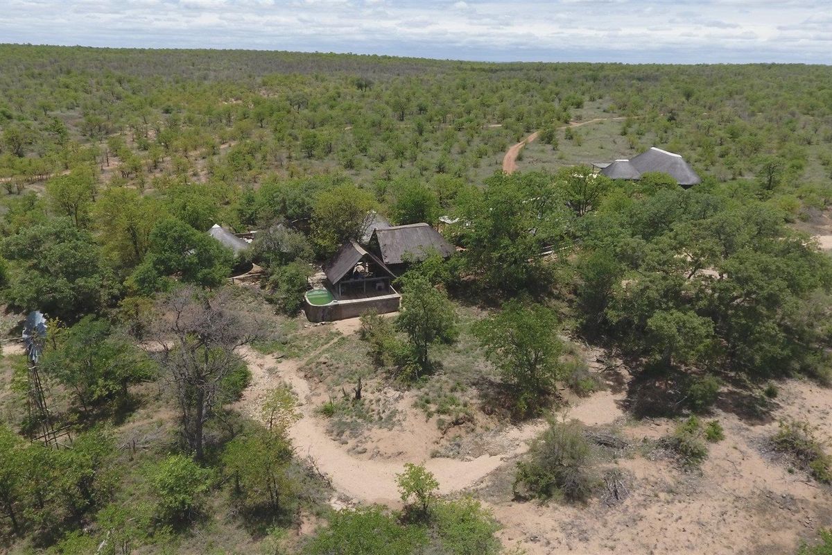 Experience authentic safari living on 428ha in Umbabat, bordering Kruger — two private camps with waterhole-facing pool, off-grid solar power and income-producing leased lodge.