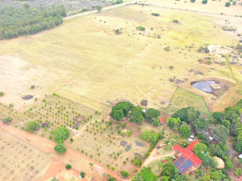 Bushveld estate for events and farming, game-fenced with 22ha pecan plantation; includes concrete tree-house entertainment venue and main lodge with five en-suite bedrooms.