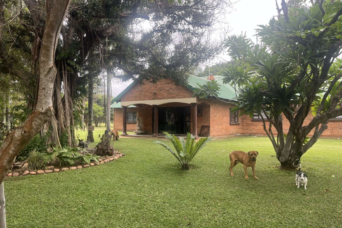 Embrace rugged farm living near Mookgophong (Naboomspruit) on 84.9ha of fertile land with indigenous trees and a game boma — main house with four bedrooms, three baths.