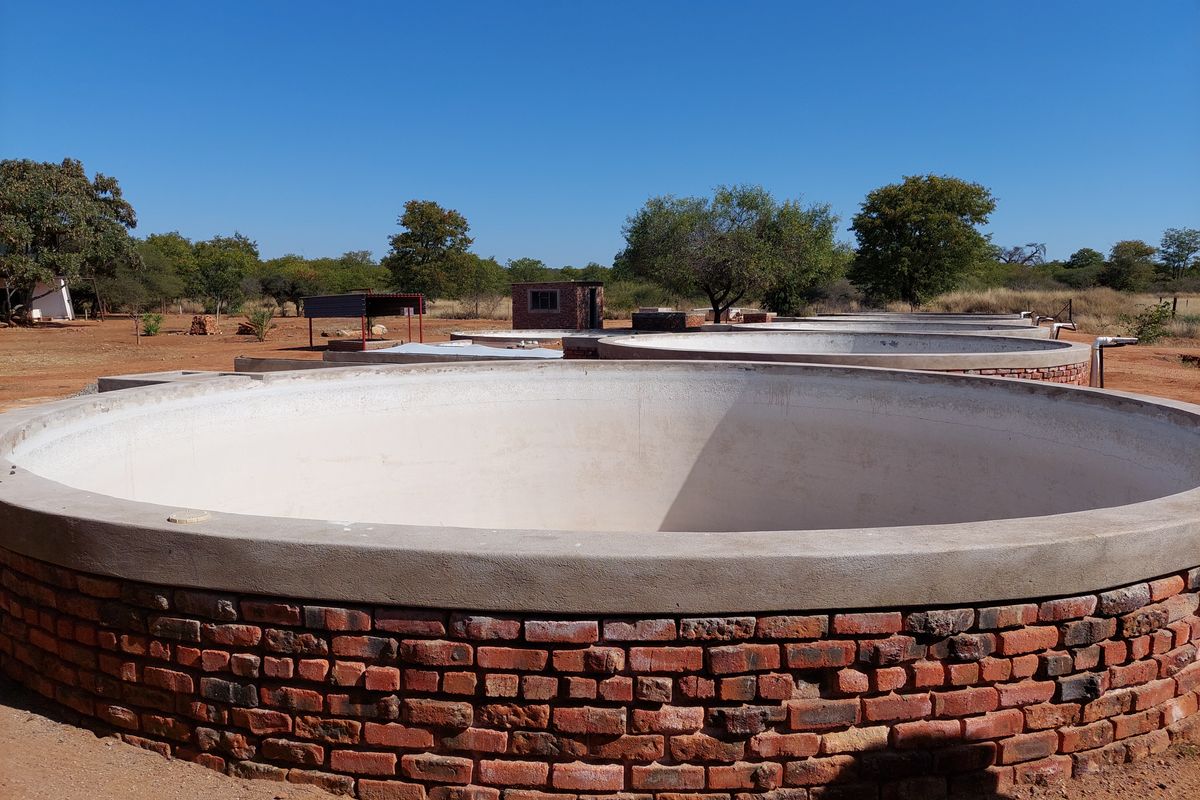 Entrepreneurial riverside lifestyle along the Sand River near Mopane, bushveld setting with five cement hatch tanks and 50,000L reservoir — includes two-bedroom, one-bath homestead.