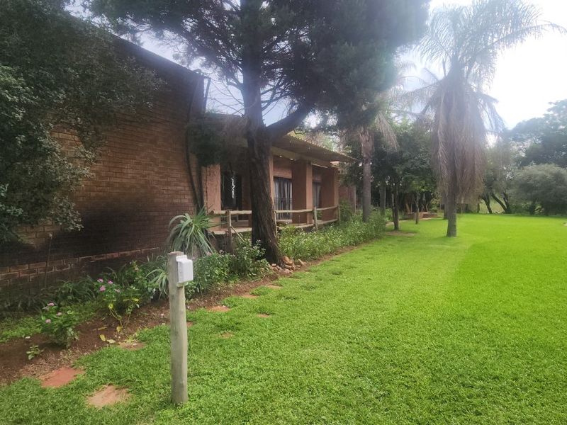 Bushveld retreat 21 km from Brits on the Crocodile River, with 300m riverfront, lapa by the dam, 533 mยฒ main house and separate flat โ ideal for livestock farming.
