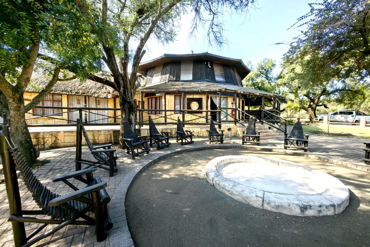 Escape to expansive bushveld living 30km from Rustenburg, with a fully operational lodge and wedding venue for 32 guests, set on 157-hectare game-fenced farmland.