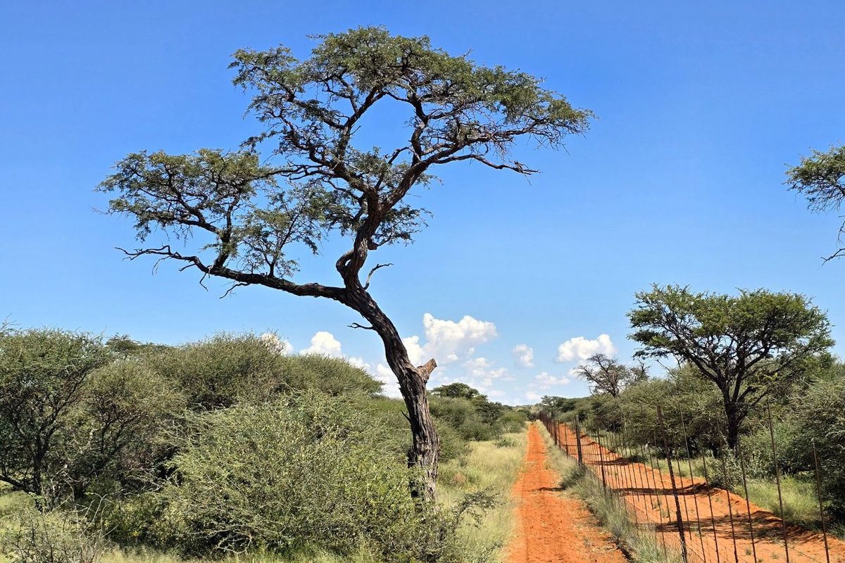 The land consists primarily of natural grasslands and woodlands, typical of the Kalahari ecosystem. Vegetation includes a healthy mix of Camel Thorn, Shepherd’s Tree, Blackthorn, Buffalo Thorn and Yellowwood trees, together with grasses that are well adapted to the sandy soils of the region. Certain areas also contain scattered thorny shrubs.