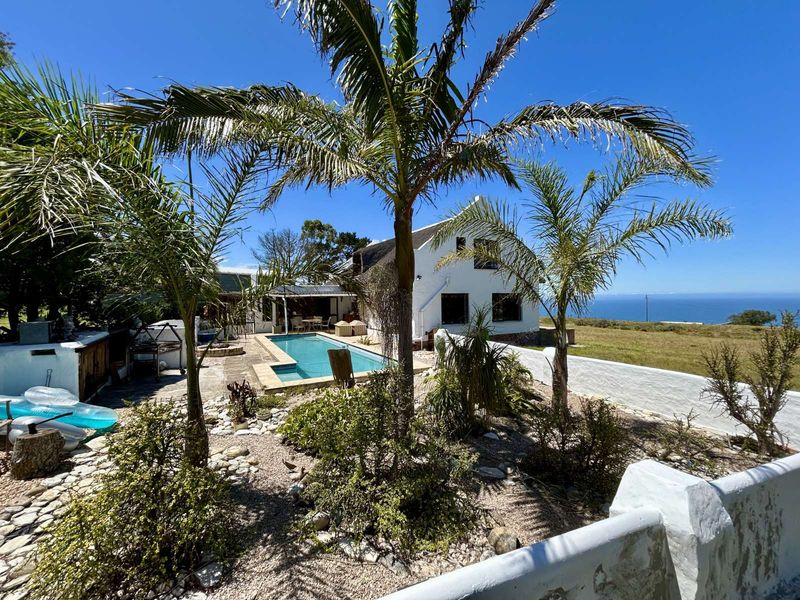 Coastal smallholding living in George Rural, peaceful acreage with 180-degree sea views to Mossel Bay, pool and equestrian-ready paddocks — main house plus flatlet, four beds, three baths.