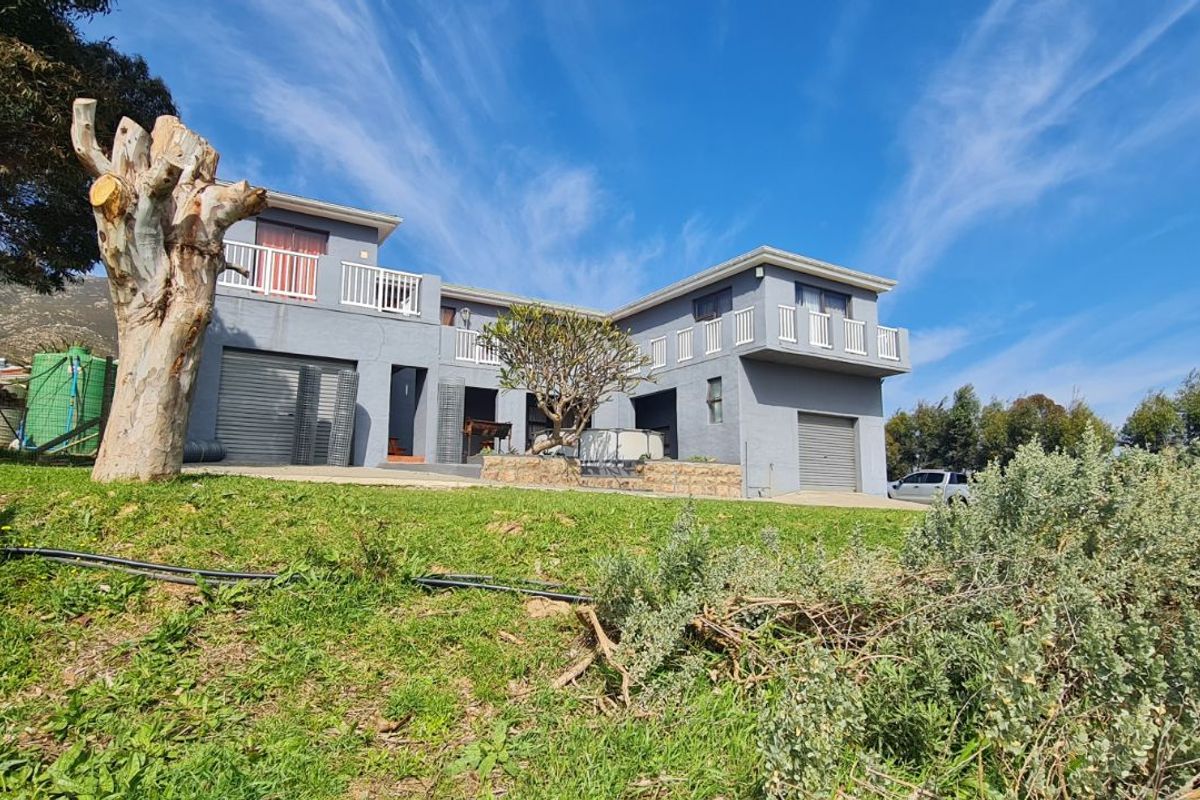 Tranquil Sweetwaters smallholding with sweeping Hottentots Holland Mountains and False Bay views, multi-level dual-living home with balcony and built-in braai, borehole and small dam, three bedrooms, three bathrooms.