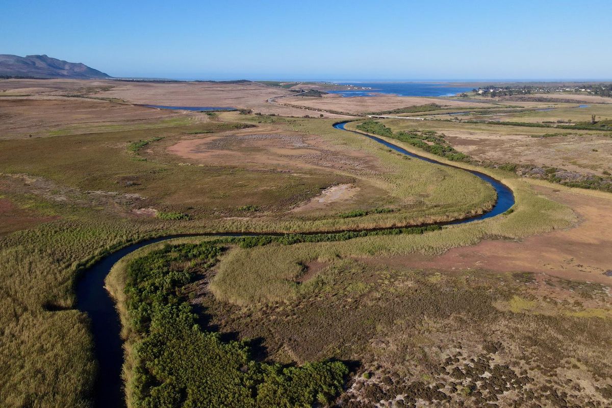 Coastal-country living on 125ha between Botrivier and Hermanus opposite Arabella Golf Estate, minutes from Kleinmond beach, river-bordered farm with three family cottages and resort potential.