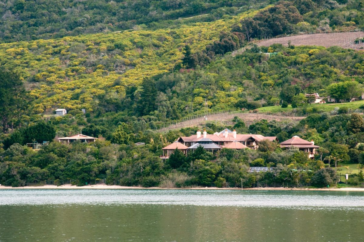 Resort-style homestead on Western Heads with sweeping Knysna Lagoon views, ideal for boutique hospitality — private jetty, seven suites and four garages.