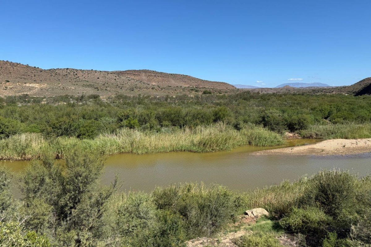 Embrace quiet Klein Karoo lifestyle just outside Van Wyksdorp, on the road to Ladismith—±15 hectares with the Groot River, road access, panoramic views and household water source.