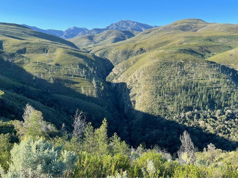 Escape to a private Garden Route farm with panoramic mountain and river views, off-grid cabin, harvestable Black Wattle and diverse grazing — 112 hectares near Mossel Bay.