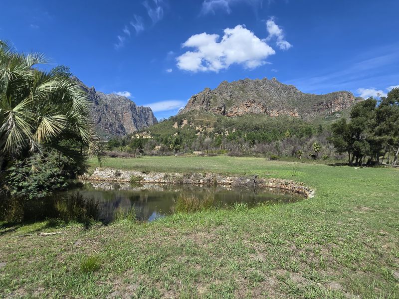Escape to off-grid farm life beside the Hugos River at Du Toits Kloof foothills, with a 1ha guava orchard, river cabins, and solar-powered infrastructure plus gravity-fed irrigation.