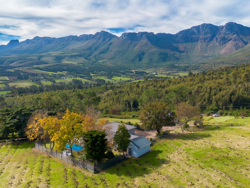 Escape to Drakenstein Rural living with mountain-framed valley views and working vineyards — excellent equestrian facilities with stables and paddocks, plus covered parking for six on 42ha.