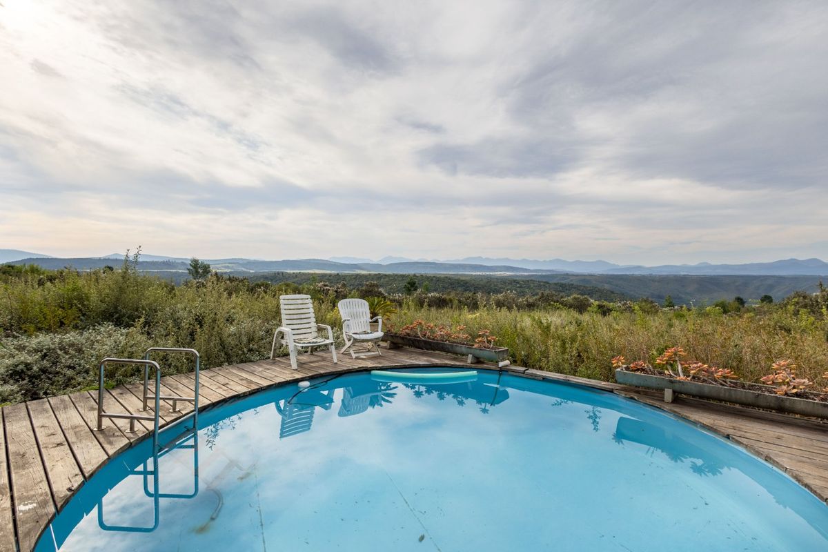Nature retreat between Knysna and Plett overlooking SANParks forest and mountains, an established guest lodge with mountain-edge lapa, pool deck and direct hiking access to Bitou River.