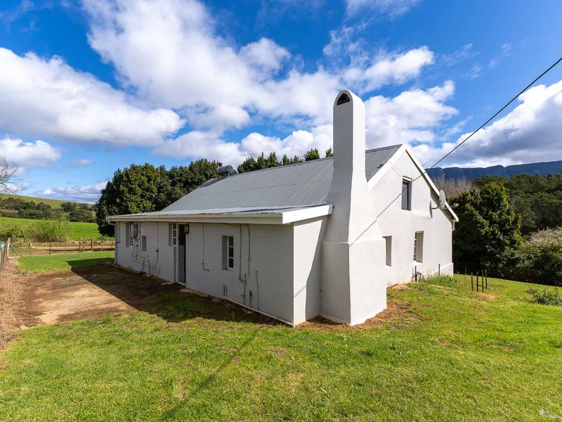 Embrace off-grid country living on 23 hectares in the Langeberg foothills, 21 km north of Riversdale and 6 km from Korentepoort Dam; farmhouse, two cottages, solar power system.