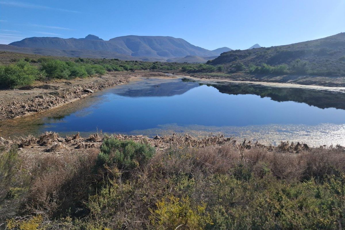 If you are looking for a unique location to buy a farm, look no further. This 630 Ha farm is 25 km from Riversdale, 60 km from Ladismith and 42 km from Van Wyksdorp,close to the R323. It`s in a safe environment and has a very special ambience where you can find a variety of Karoo fauna and flora.
