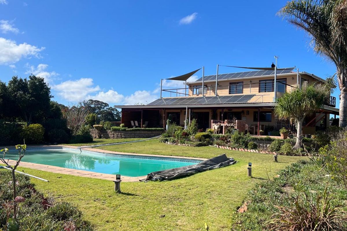Embrace regenerative farm living beneath the Outeniqua Mountains, 18 km from Sedgefield, with panoramic top-of-the-world views, income cottages and fully off-grid solar systems.