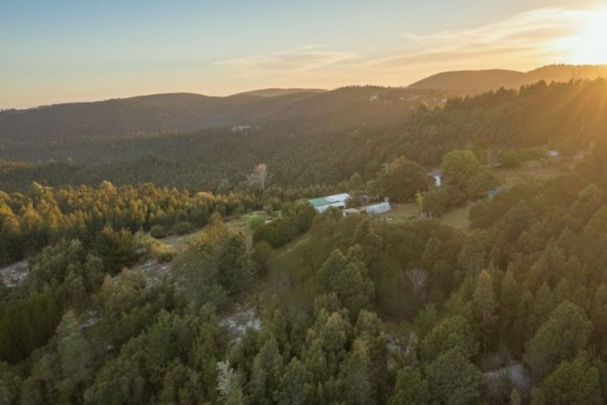 Off‑grid smallholding with north‑facing Barrington mountain views, 8.6ha forest and a 1ha Keurboom stand producing shiitake — two one‑bed cottages, rainwater and solar systems.