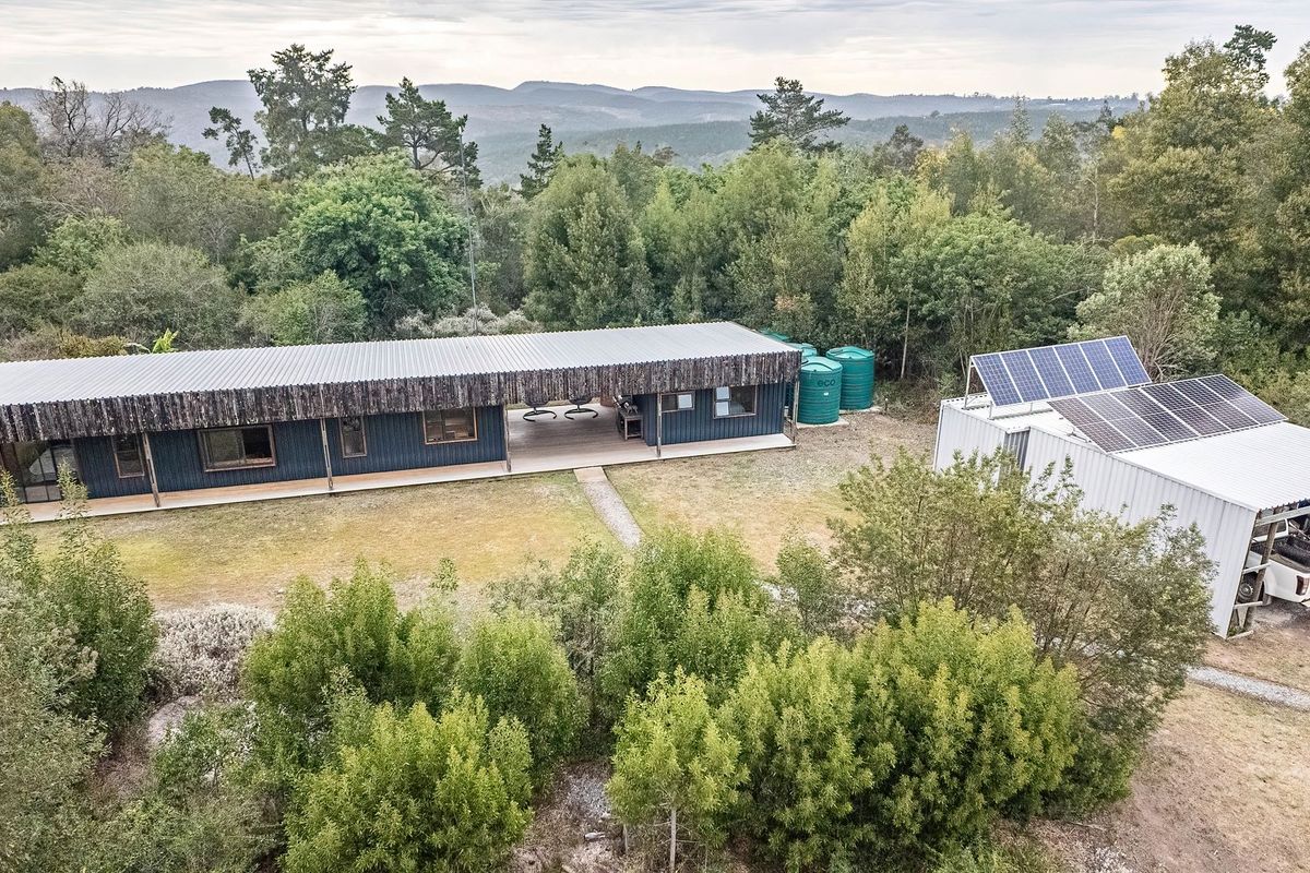 Practical living has been well considered. There is a double carport of 36 sqm, a shed/workshop that houses the 5 kVA solar system with 13 kVA lithium-ion battery storage, and additional shed tucked discreetly into the forest. A secure, enclosed garden keeps vegetables safe from wildlife, while the chicken coop provides a protected space for chickens to roost at night. Water storage is ample with 35 000 litres of rainwater tanks, and the property is fitted with aluminium windows and doors, a septic tank and soak-away, and hot water supplied by an electric geyser powered through the solar system.