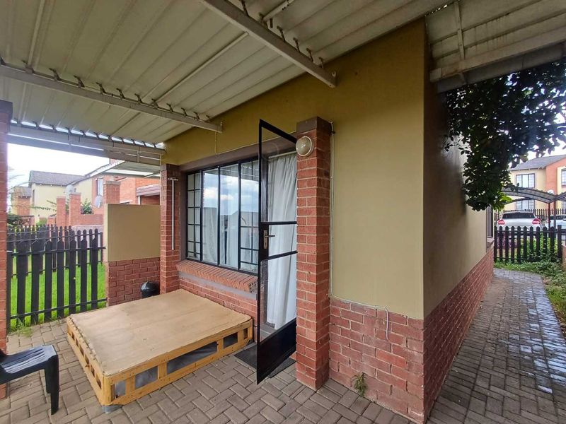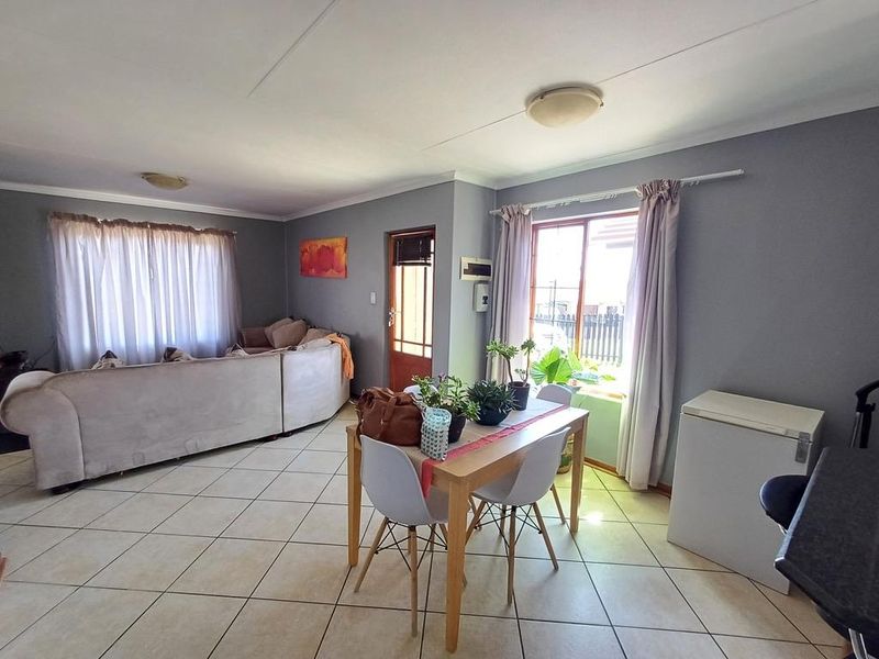3-bedroom, 2-bathroom townhouse in Bloemfontein, 114 m², with 2 garages and communal pool. Rental income R9000-R9500.