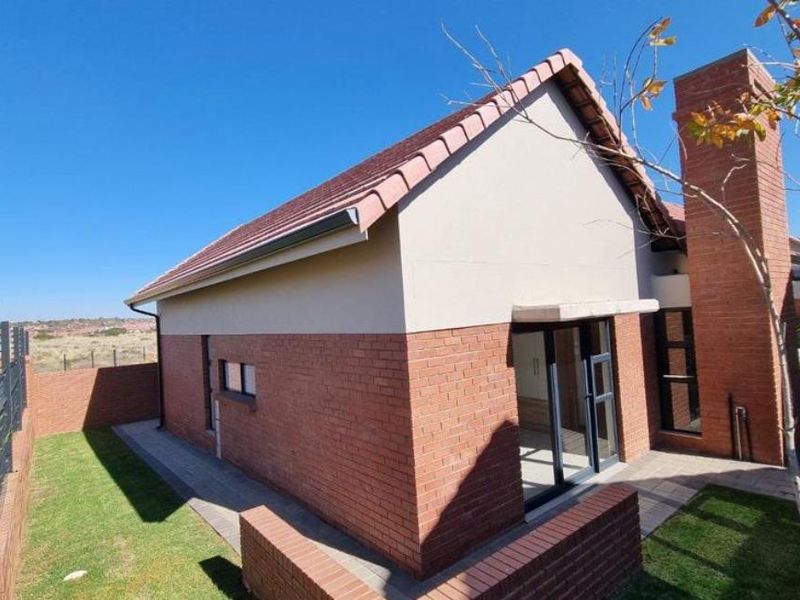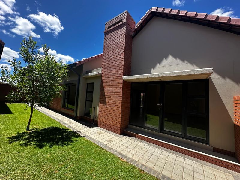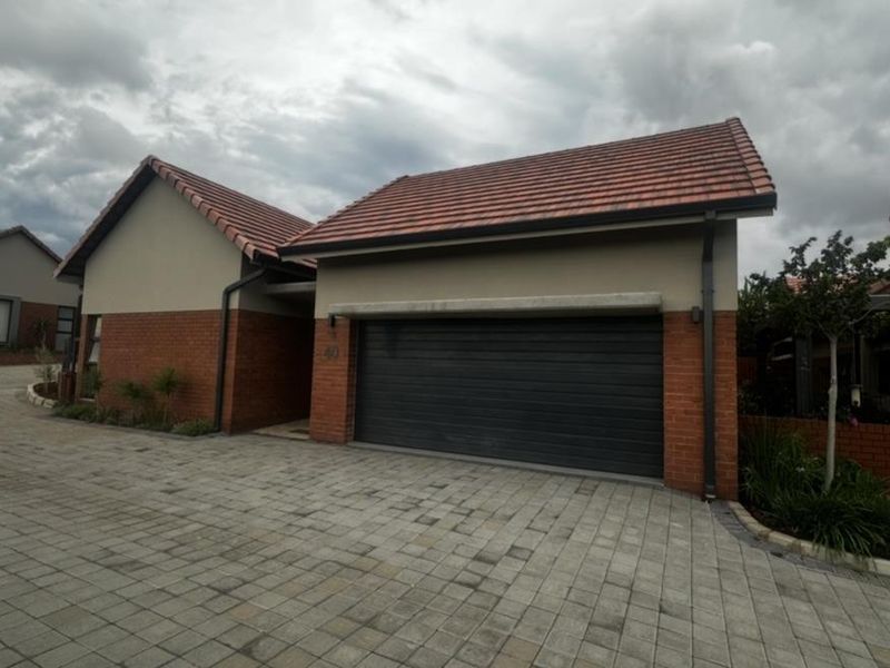 Tranquil creekside living in Wild Olive Estate, Bloemfontein — light-filled, north-facing home with private garden and covered patio with built-in braai; three bedrooms, 2.5 bathrooms and double garage.