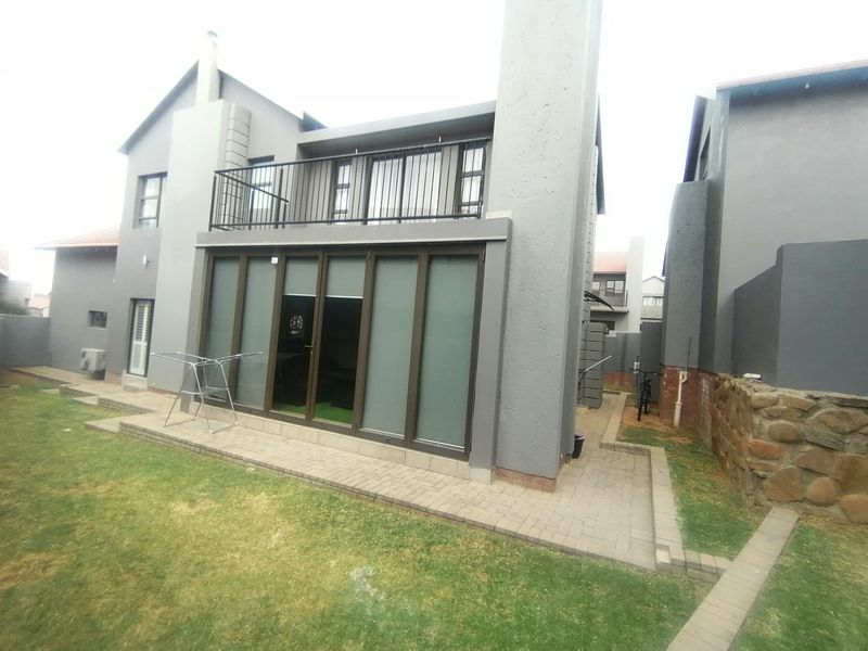 Effortless family living in Wild Olive, Bloemfontein — steps from the N1 and Northridge Mall. Double-storey townhouse with private garden, balcony views, modern kitchen; four bedrooms, three baths, double garage.