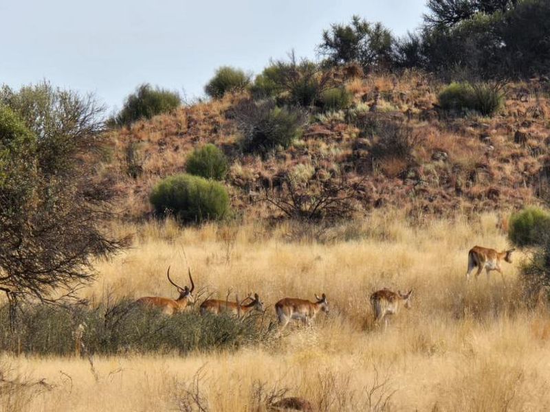 Authentic rural lifestyle on 437ha in the Sonskyn region, productive mixed sweetveld with 5ha pivot irrigation (generator-driven), seven camps, four windpump-fed dams, farmhouse and workers’ cottage.