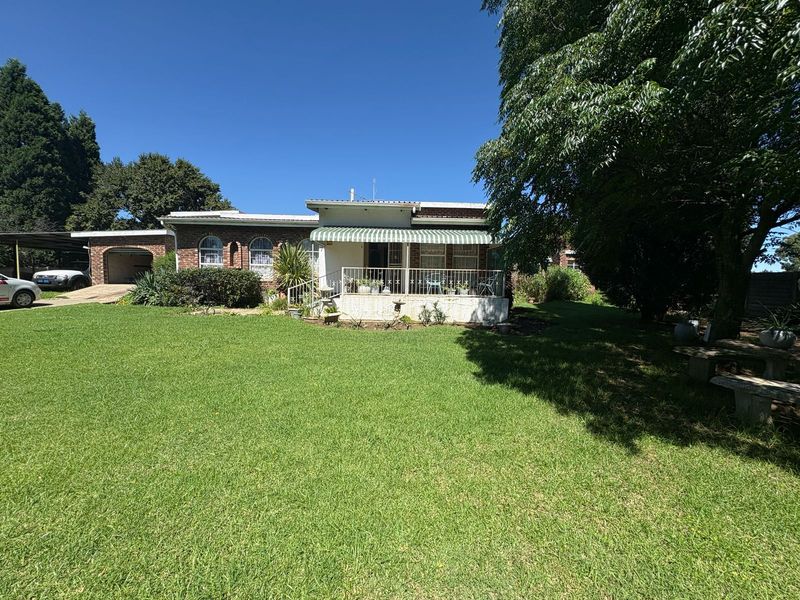 Embrace relaxed country living in Memel on a double stand with expansive gardens and verandah, braai room and rondavel — three bedrooms, two bathrooms and triple garage.