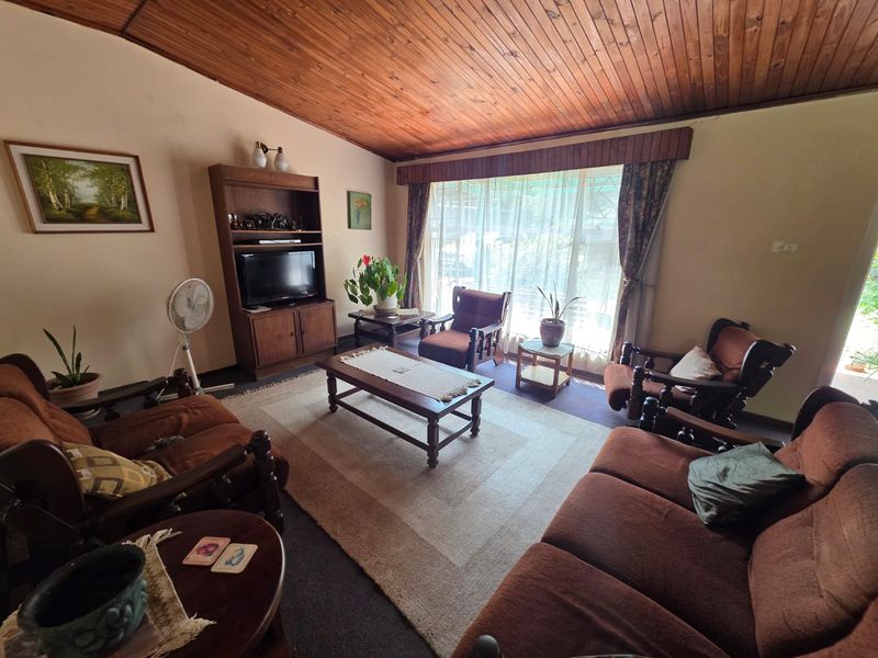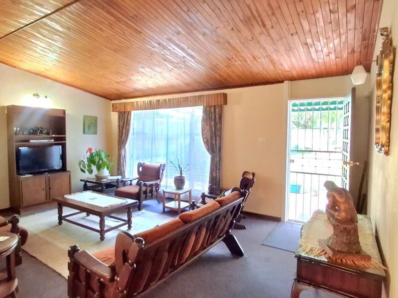 Spacious family home with sunny patio and garden for outdoor entertaining in an established neighborhood; outdoor braai, air-conditioned lounge, four bedrooms (one en-suite), two bathrooms, single garage.