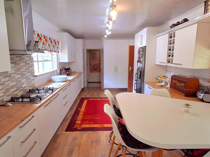 Entertainer's dream in a family-friendly neighbourhood with sparkling pool, braai and expansive yard with borehole; solid-wood kitchen, scullery and move-in ready layoutโfour bedrooms, two bathrooms and double electronic garage.