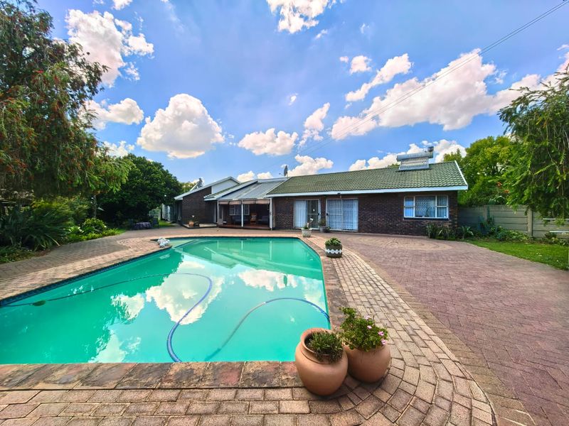 Family-focused outdoor living in tranquil Old Vaalpark, on a generous stand with an established garden and sparkling pool. Three bedrooms, two bathrooms and tandem garage.