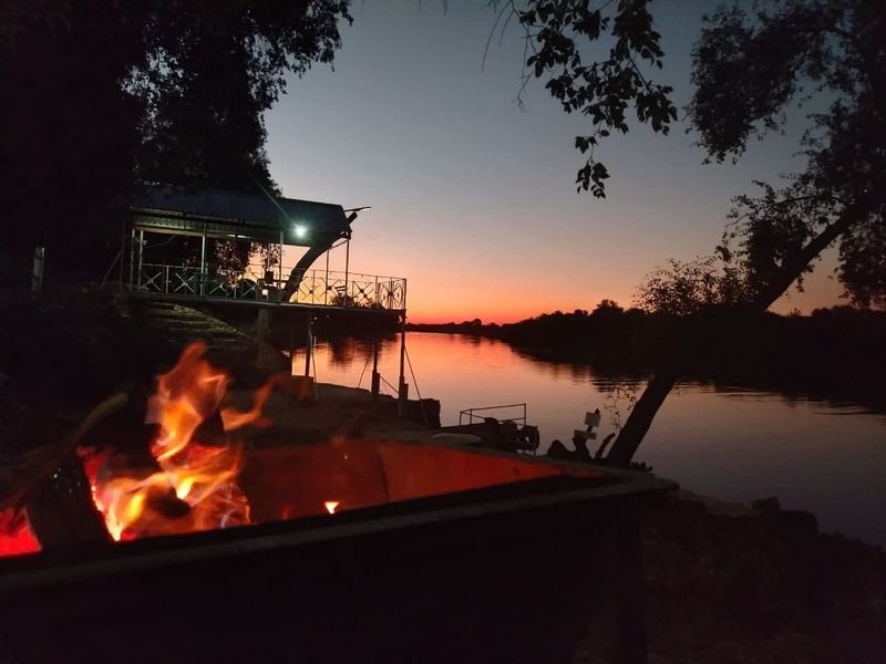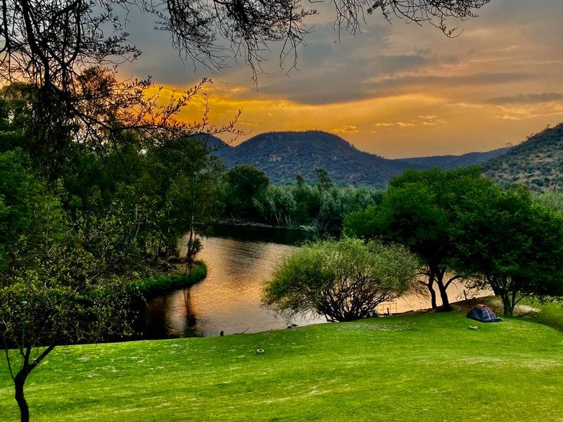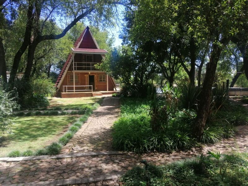 Relax on the Vaal Riverfront—fishing, camp stands and jetties enhance outdoor living; income-ready with six self-catering chalets, rustic boma braai and owner's main home.