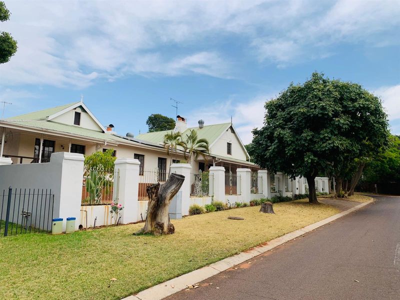 Peaceful retirement living in secure Berghang Village with on-site library and maintained gardens; two-bedroom, one-bath townhouse features open-plan living, louvre-deck patio and single automated garage.