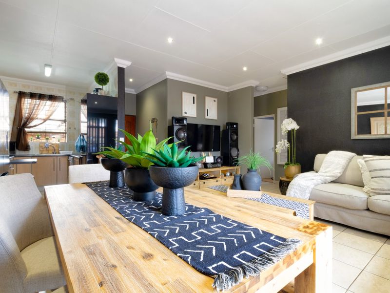 Enjoy sunlit, secure cluster living minutes from Town Square Mall and Netcare; double-volume north-facing sunroom, manicured garden and granite kitchen. Three bedrooms, 1.5 baths, double garage.