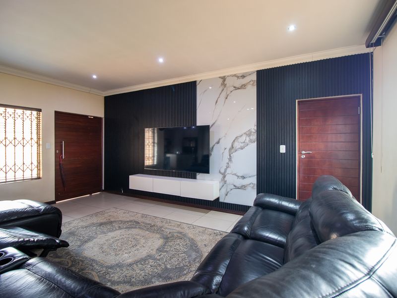 Enjoy secure suburban living in sought-after Alberton with easy access to schools and malls; private garden and large undercover entertainment patio with indoor braai. Three bedrooms, two bathrooms, double garage.