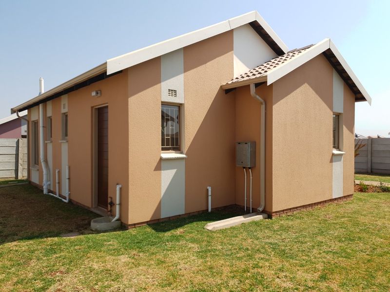 Active family living with parks, jogging trails and jungle gyms in Sky City, 20 minutes from Johannesburg CBD. Secure, enclosed development with solar geyser; two-bedroom, one-bath home.