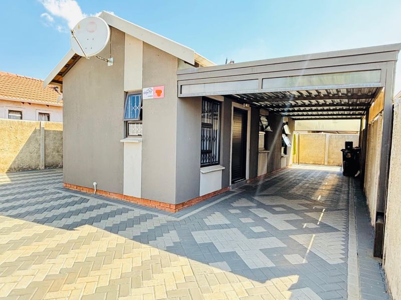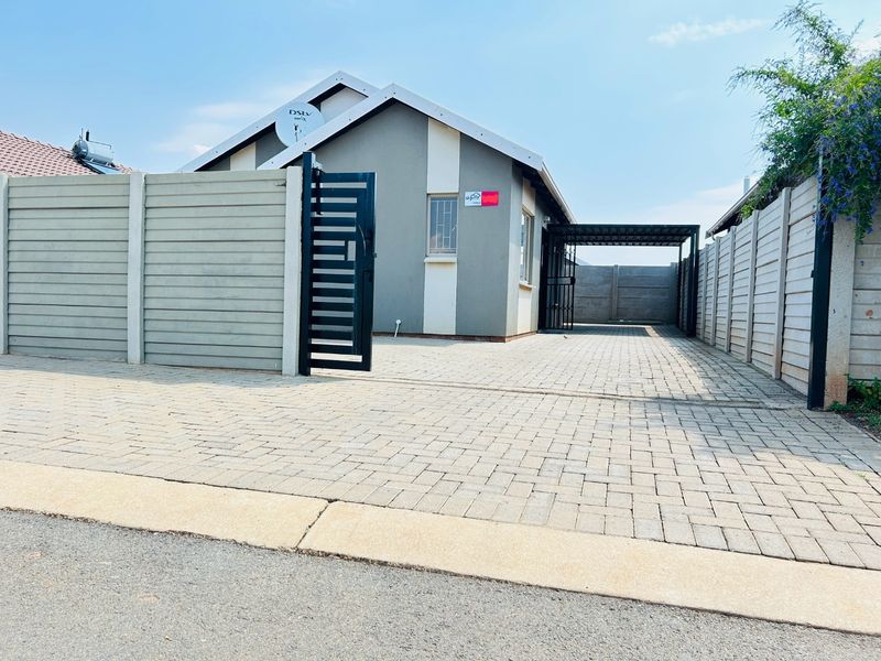 Easy secure suburban living in Sky City, 30 minutes from Johannesburg CBD and close to shops and schools; modern fitted kitchen, low-maintenance paved yard, two bedrooms and a carport.