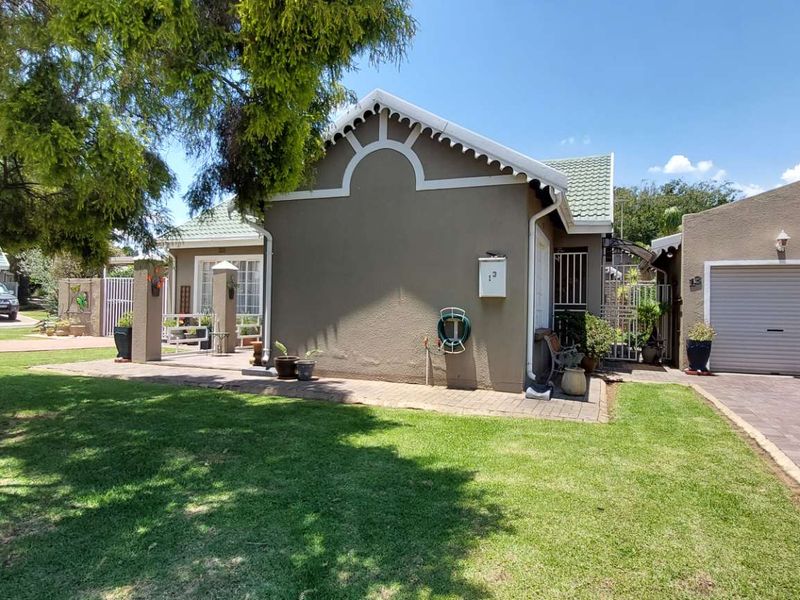 Relax in secure Summerfields Estate living — south-facing corner unit with open-plan flow, manicured garden and thatched lapa for entertaining; two ensuite bedrooms, garage and carport.