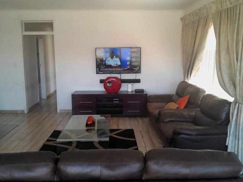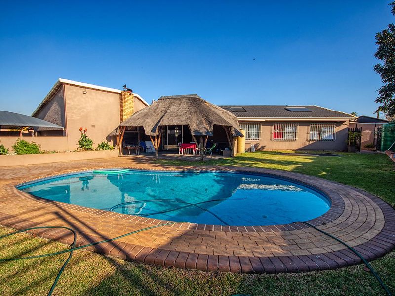 Family-ready entertainer in a peaceful neighbourhood, featuring a huge entrance and flowing living areas into a triple-sized entertainment room with Jacuzzi, built-in braai, pool access; four bedrooms, two baths.