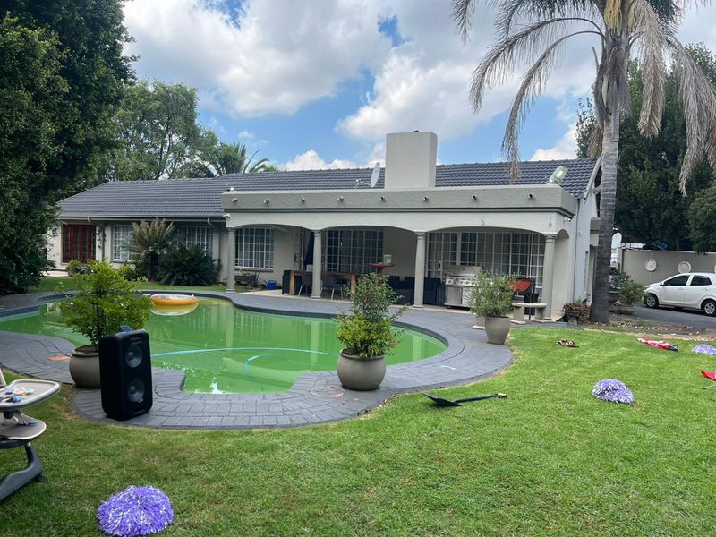 Entertain effortlessly in a leafy suburb family home with a thatched lapa, pool and large garden; bedsit offers rental income, four bedrooms, two bathrooms and single garage.
