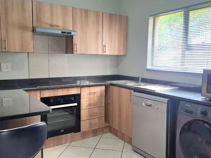 Relaxed ground-floor living near Life Hospital, with an enclosed balcony for entertaining, communal garden with braai, secure lock-up garage and extra parking — two bedrooms, one bath.