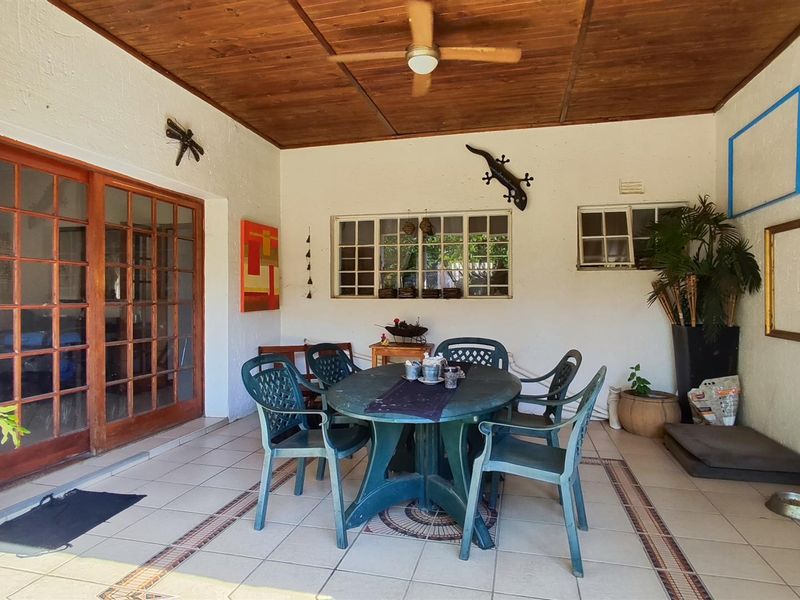 Relaxed family living in sought-after Benoni North, with seamless indoor-outdoor flow, granite island kitchen and an immaculate irrigated garden with sculptural water features; four bedrooms, three bathrooms.