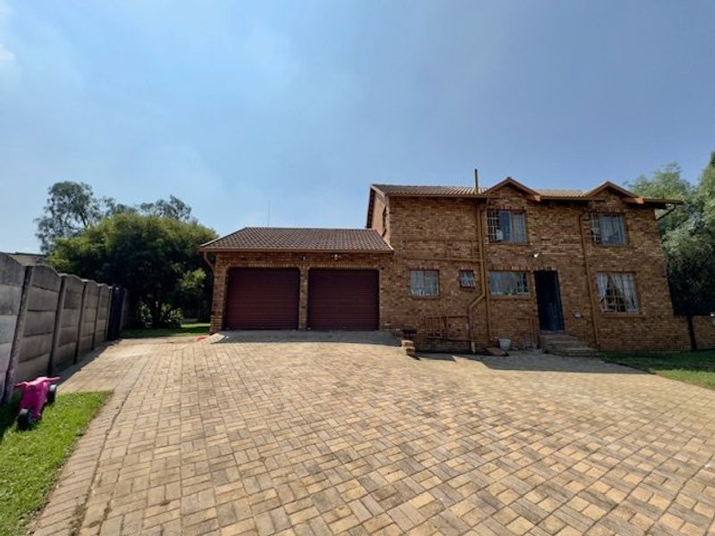 Serene lakeside living in upmarket Benoni — enclosed, secure estate with dam views and lush gardens; renovated double-storey home with three bedrooms, two bathrooms and double garage.